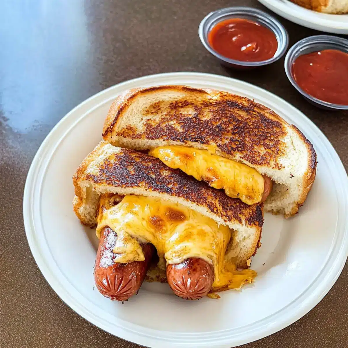 Bread Choice: Stay sturdy: Opt for thick slices of bread, like sourdough, to hold up well against the gooey cheese and hot dog filling.