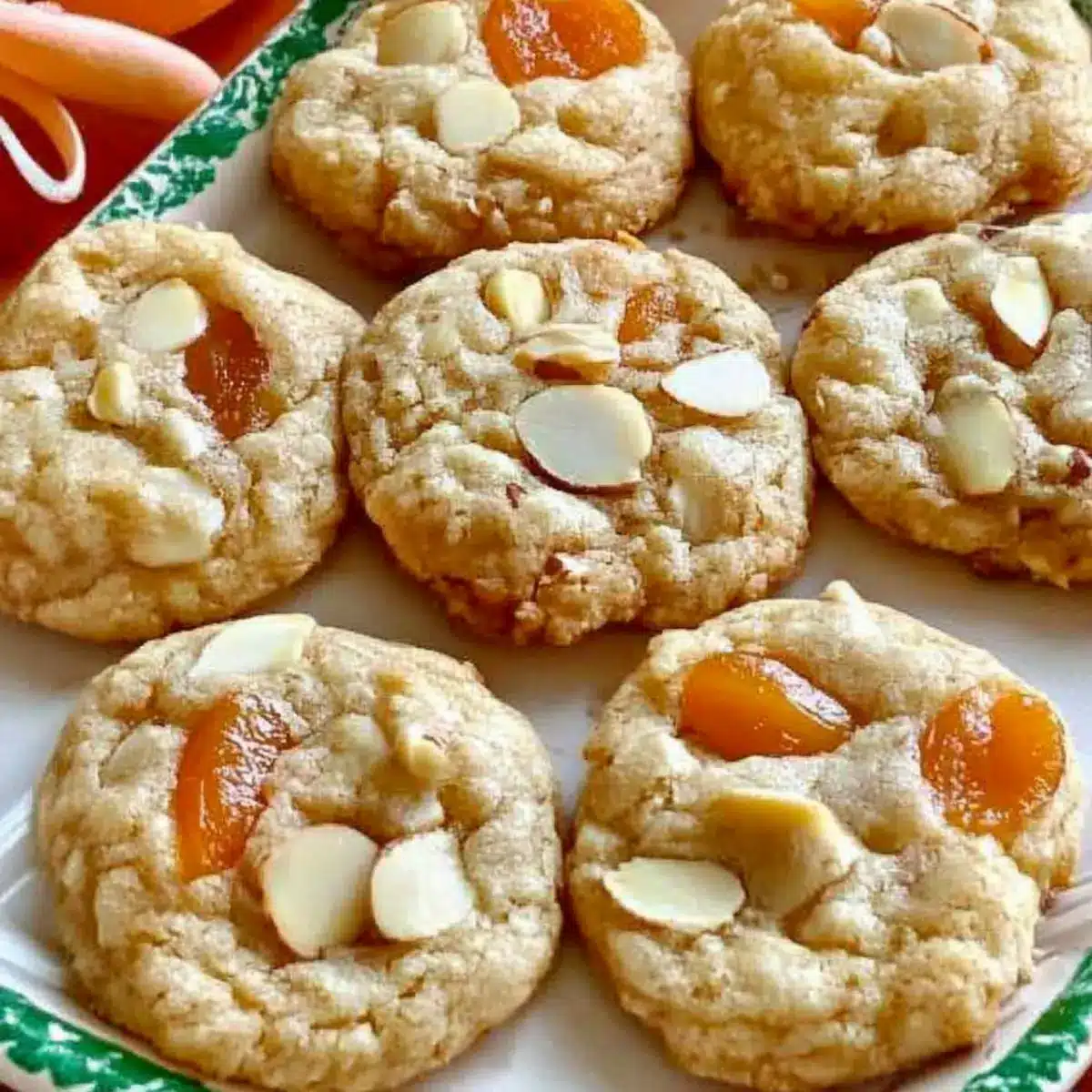 As I stood in my kitchen, the warm aroma of baking cookies whisked me back to childhood holidays filled with laughter and sweet treats. Today, I’m excited to share my recipe for Chewy Apricot White Chocolate Cookies with Almonds—an irresistible twist on traditional cookies that brings comfort and joy to any gathering. The chewy apricots perfectly complement the creamy white chocolate, while the crunch of almonds adds just the right texture. Not only are these cookies a crowd-pleaser, but they’re also quick to whip up, making them ideal for busy holiday seasons. You’ll love how they make your home smell like a winter wonderland! Curious to know how to create these delightful bites? Let’s dive into the recipe!
