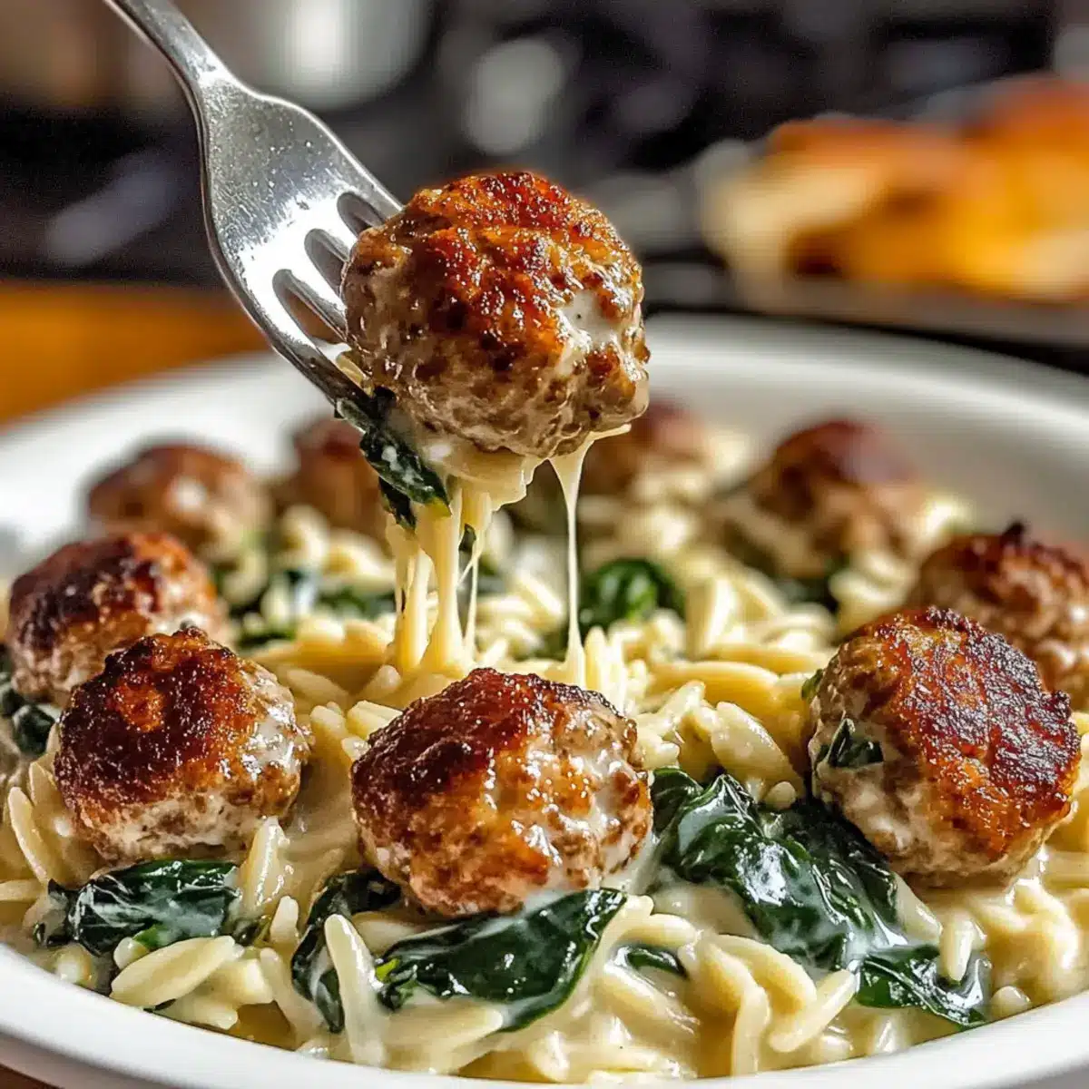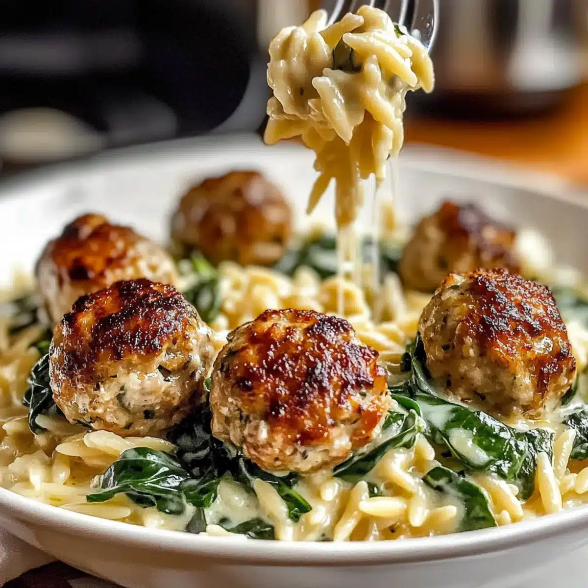 Baked Chicken Ricotta Meatballs with Creamy Spinach Orzo Bliss