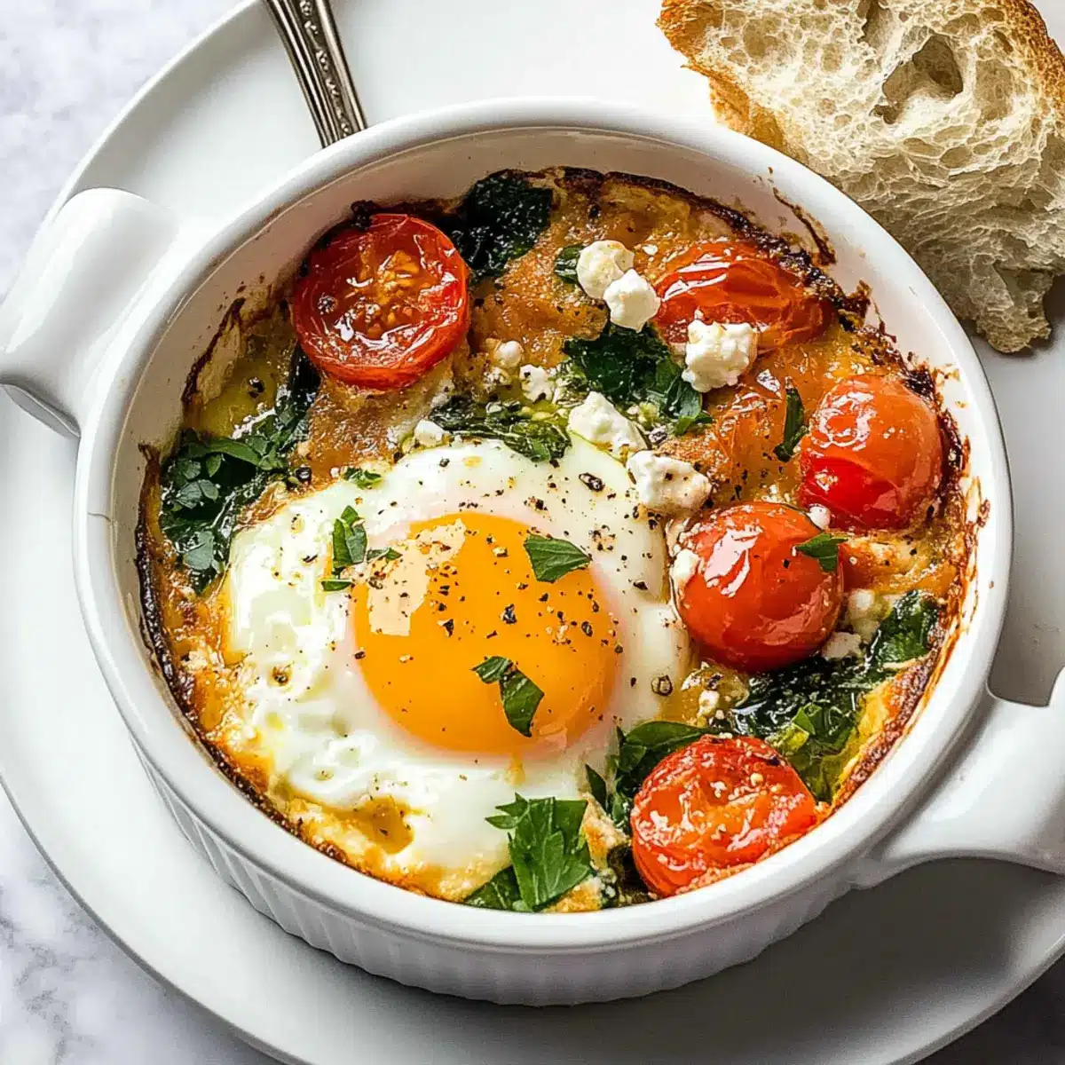 As I stood in my kitchen one sunny morning, a vibrant bouquet of tomatoes and fresh spinach caught my eye, sparking the inspiration for my Mediterranean Baked Feta Eggs. This low-carb, healthy breakfast dish is a delightful blend of creamy feta, juicy veggies, and perfectly baked eggs that not only makes for a beautiful presentation but also brings a touch of Mediterranean sunshine to your table. With incredibly quick prep time and a charm that makes it perfect for brunch gatherings or special celebrations, this recipe is bound to impress your family and friends. Plus, you can easily customize it using individual ramekins or a large baking dish, allowing everyone to dive into their own delicious servings. Curious about how this dish comes together? Let’s dive in!