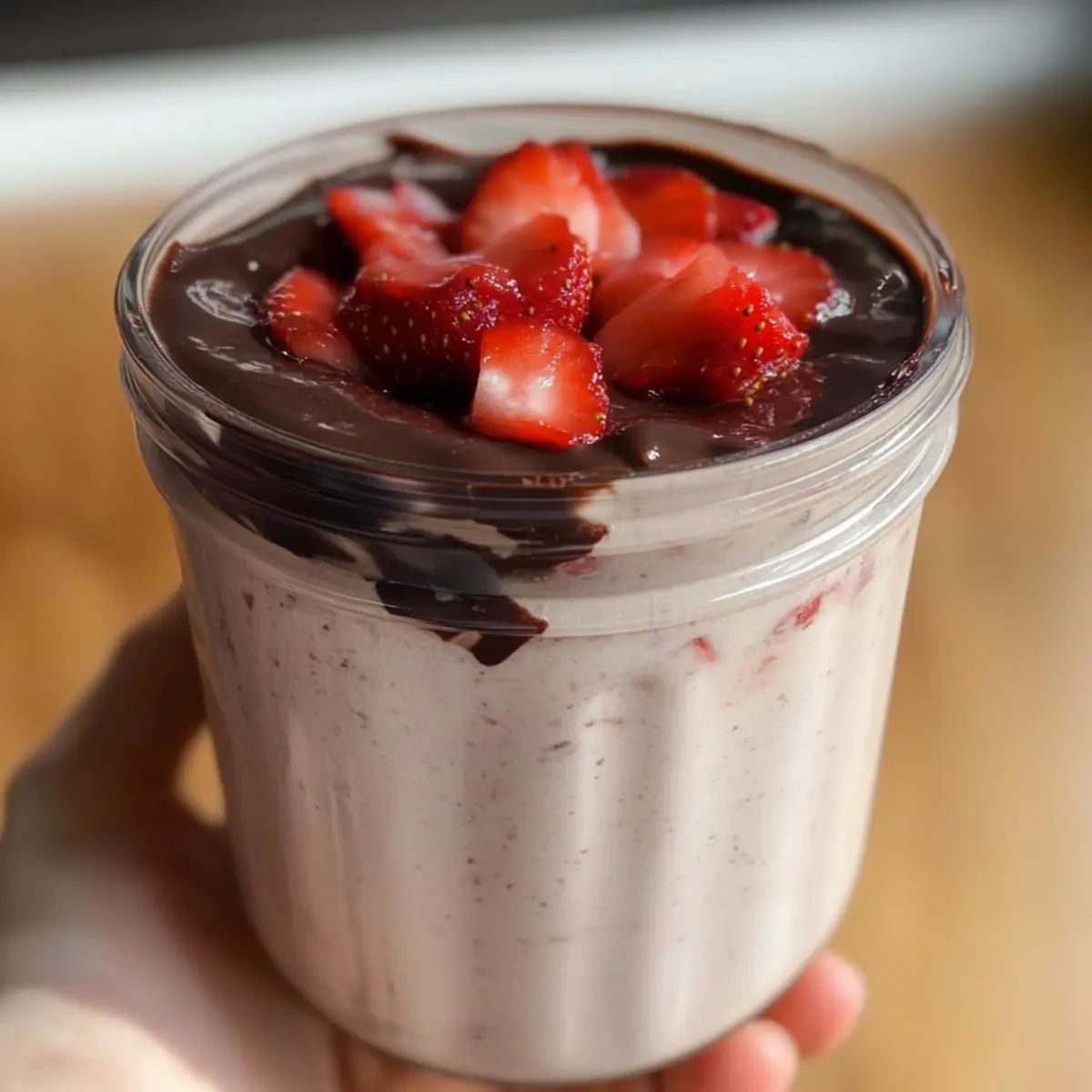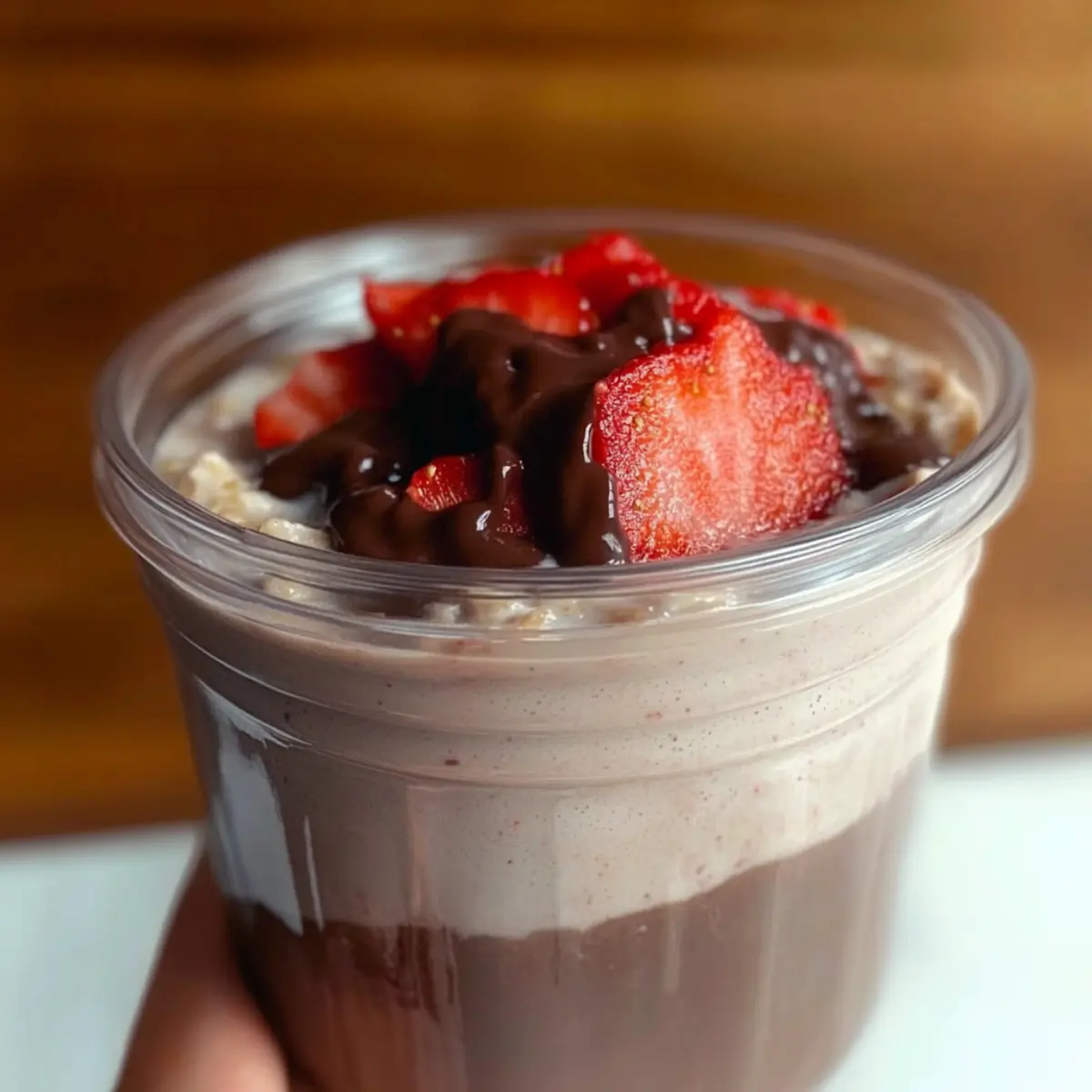 Place the jars or bowls back in the refrigerator to set the chocolate shell for at least 2-3 hours, or overnight for the best results. As the chocolate cools, it will harden into a beautiful shell, contrasting perfectly with the creamy blended strawberry oats beneath.