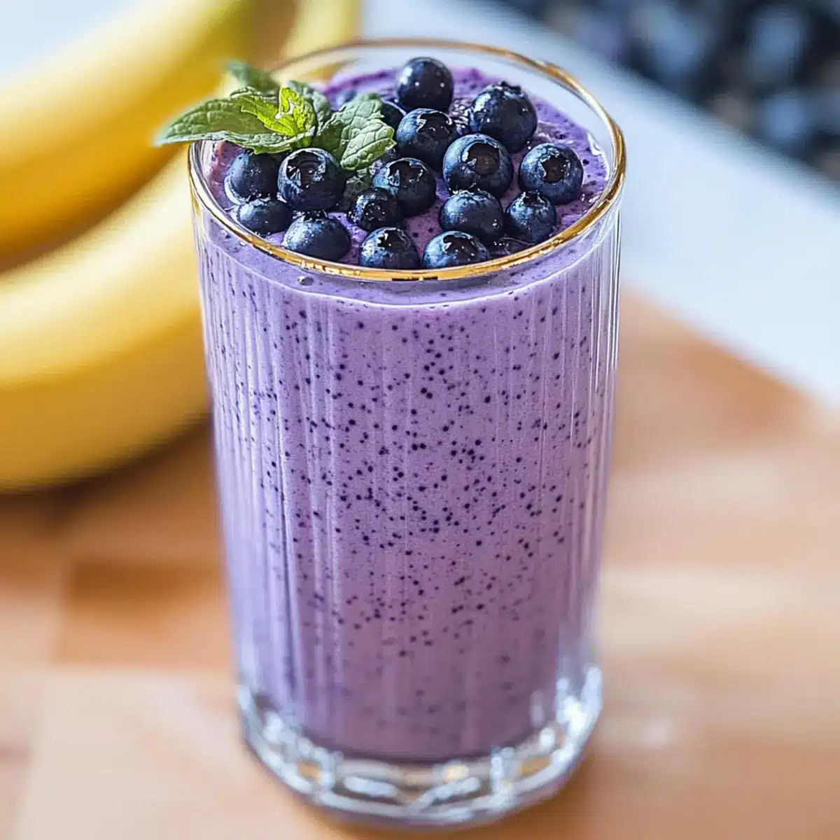 - Pour the mixture into two tall glasses, garnish with fresh blueberries or a mint sprig. Enjoy your Blueberry Banana Smoothies immediately.