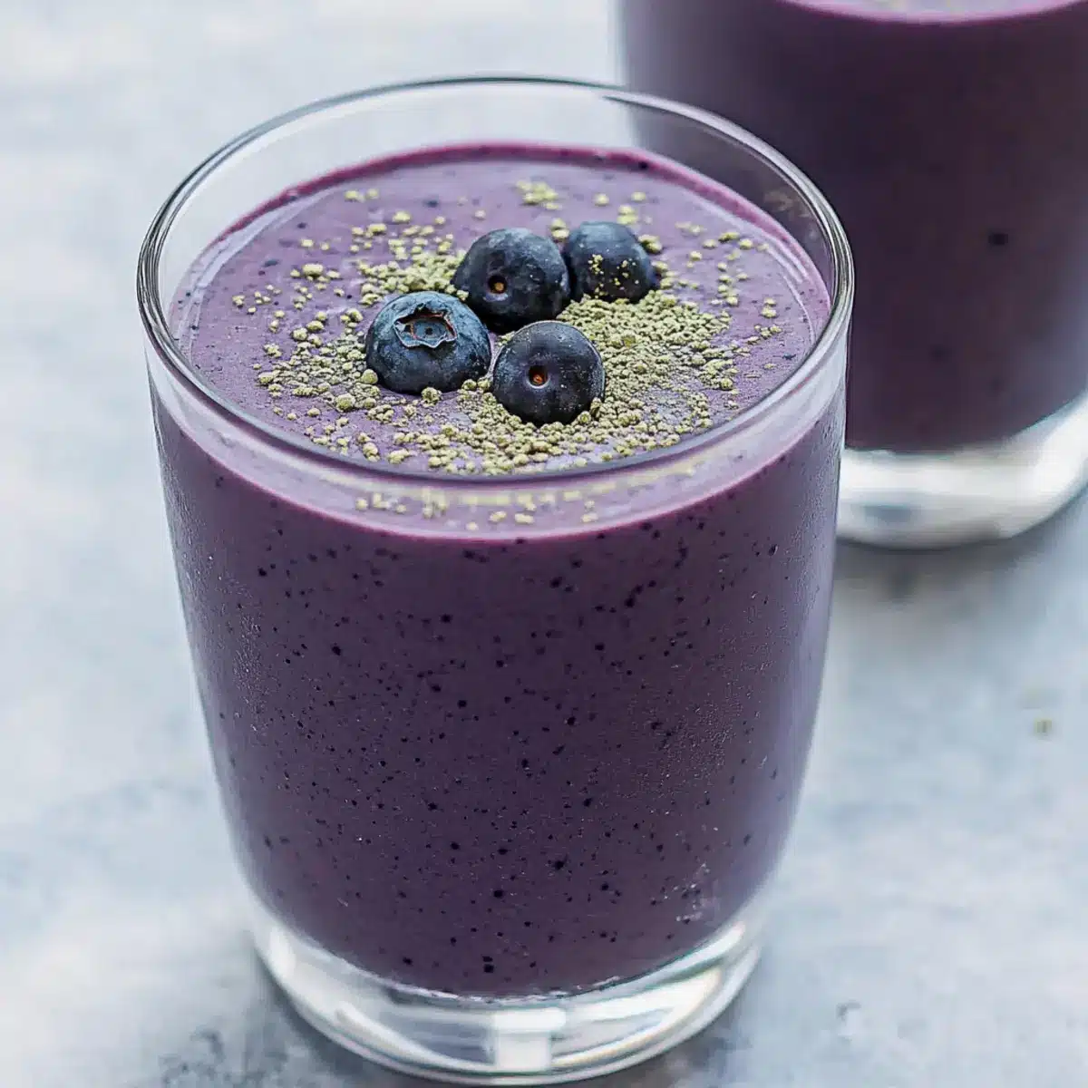 Pour your Blueberry Matcha Smoothie into a chilled glass or bowl. For an extra touch, consider garnishing with a few whole blueberries or a sprinkle of matcha on top. Serve immediately to enjoy the freshest flavor and texture, making this a perfect energizing start to your day or revitalizing post-workout snack.