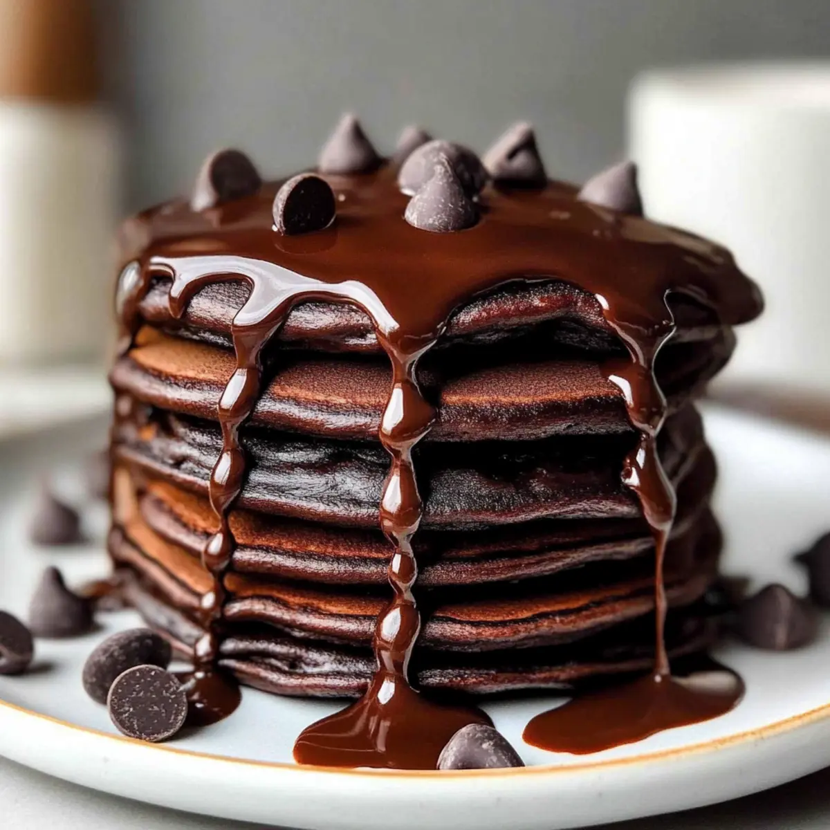Indulge in Fluffy Chocolate Pancakes with Decadent Ganache