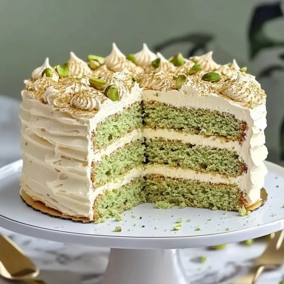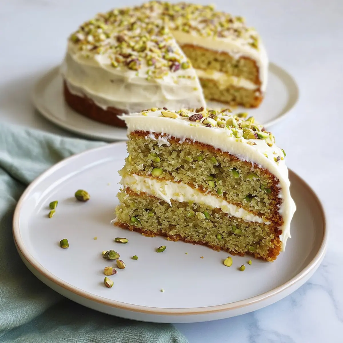 Delicious Pistachio Cake with Creamy Vanilla Icing Bliss