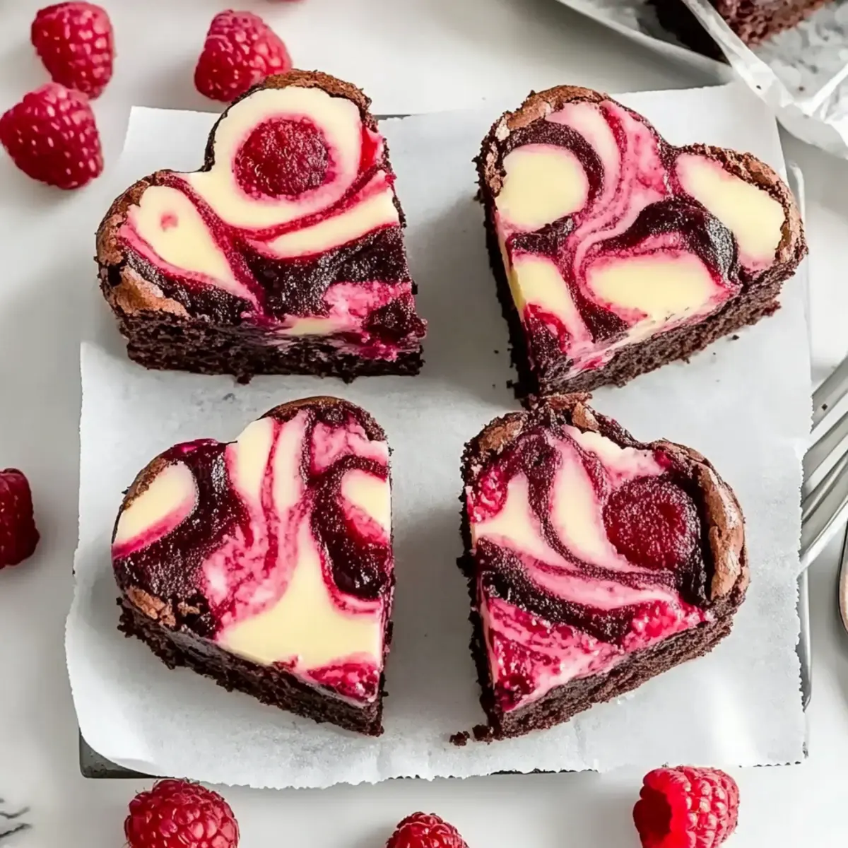 Heart Shaped Brownies with Raspberry Cheesecake Swirl