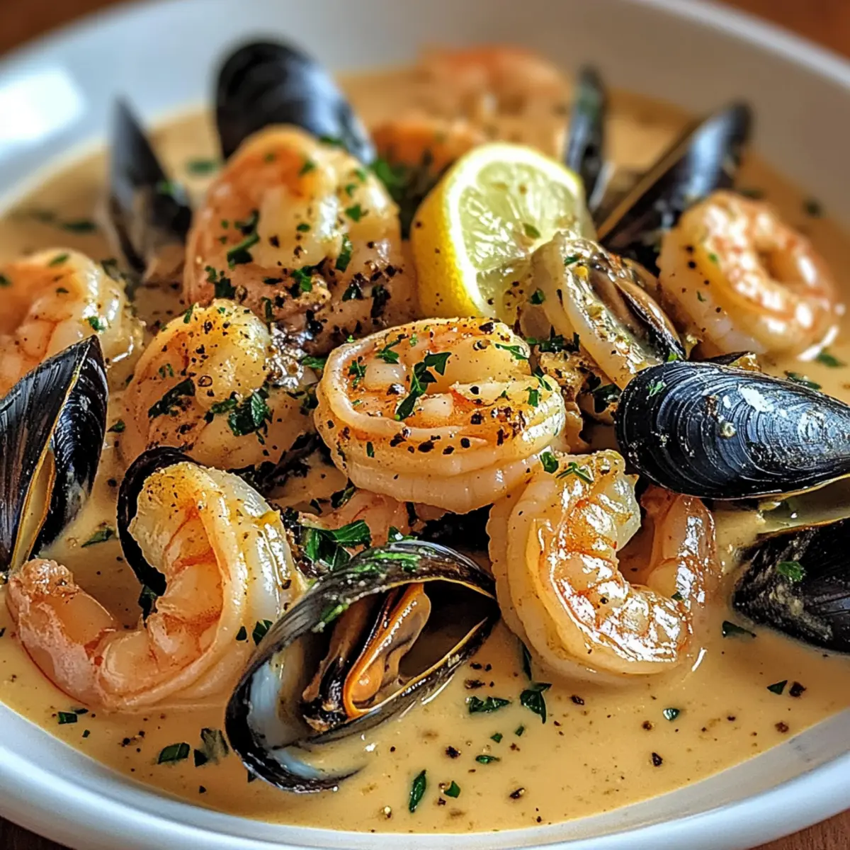 Shrimp and Mussels in Creamy Garlic Sauce for Seafood Lovers