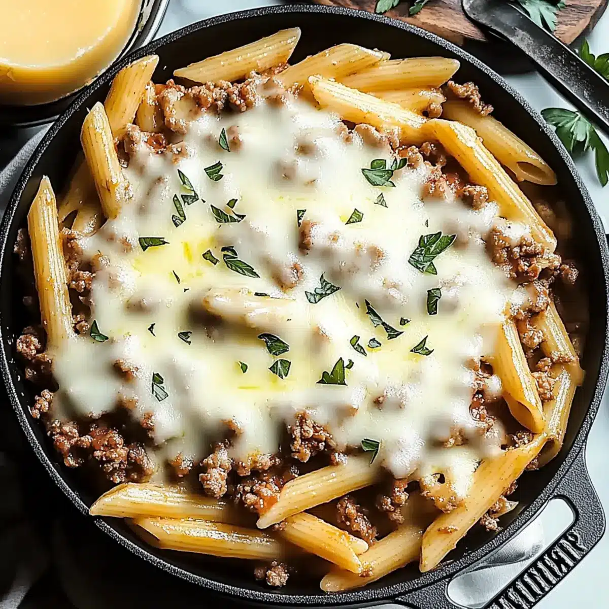 Cheesy Penne with Garlic Butter Ground Beef for Cozy Nights