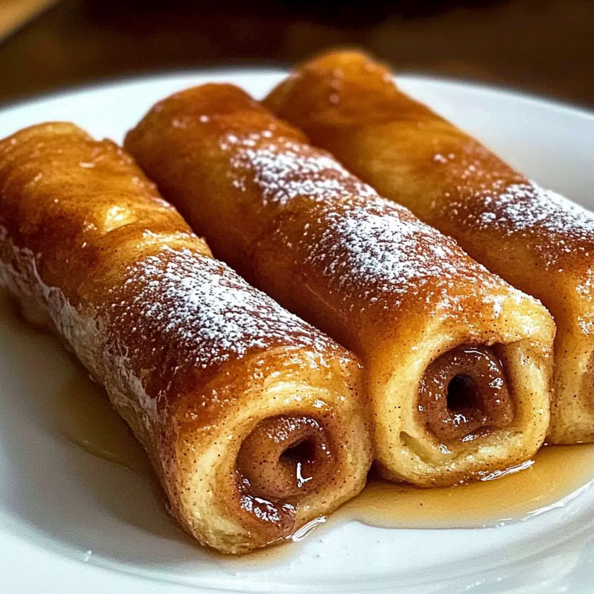 Once the roll-ups are beautifully golden and crispy, remove them from the skillet and place them on a plate. Serve warm, and for extra indulgence, drizzle with maple syrup or sprinkle with powdered sugar. Your Cinnamon Roll French Toast Roll-Ups are now ready to delight your family and friends!