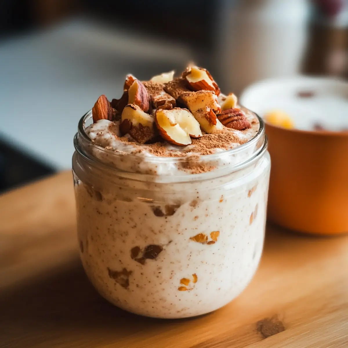 Finally, personalize your Cinnamon Roll Overnight Oats by adding your choice of toppings. Consider sprinkling chopped nuts for a crunchy texture, or fresh fruits like sliced bananas or berries for a sweet touch. A dash of additional cinnamon on top can also enhance the flavor and presentation. Mix it up according to your taste and enjoy the wholesome breakfast delight!