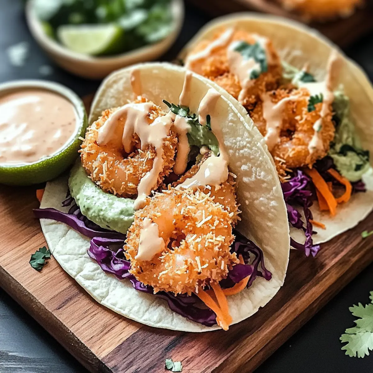 Crispy Coconut Shrimp Tacos with Spicy Lime Sauce Bliss