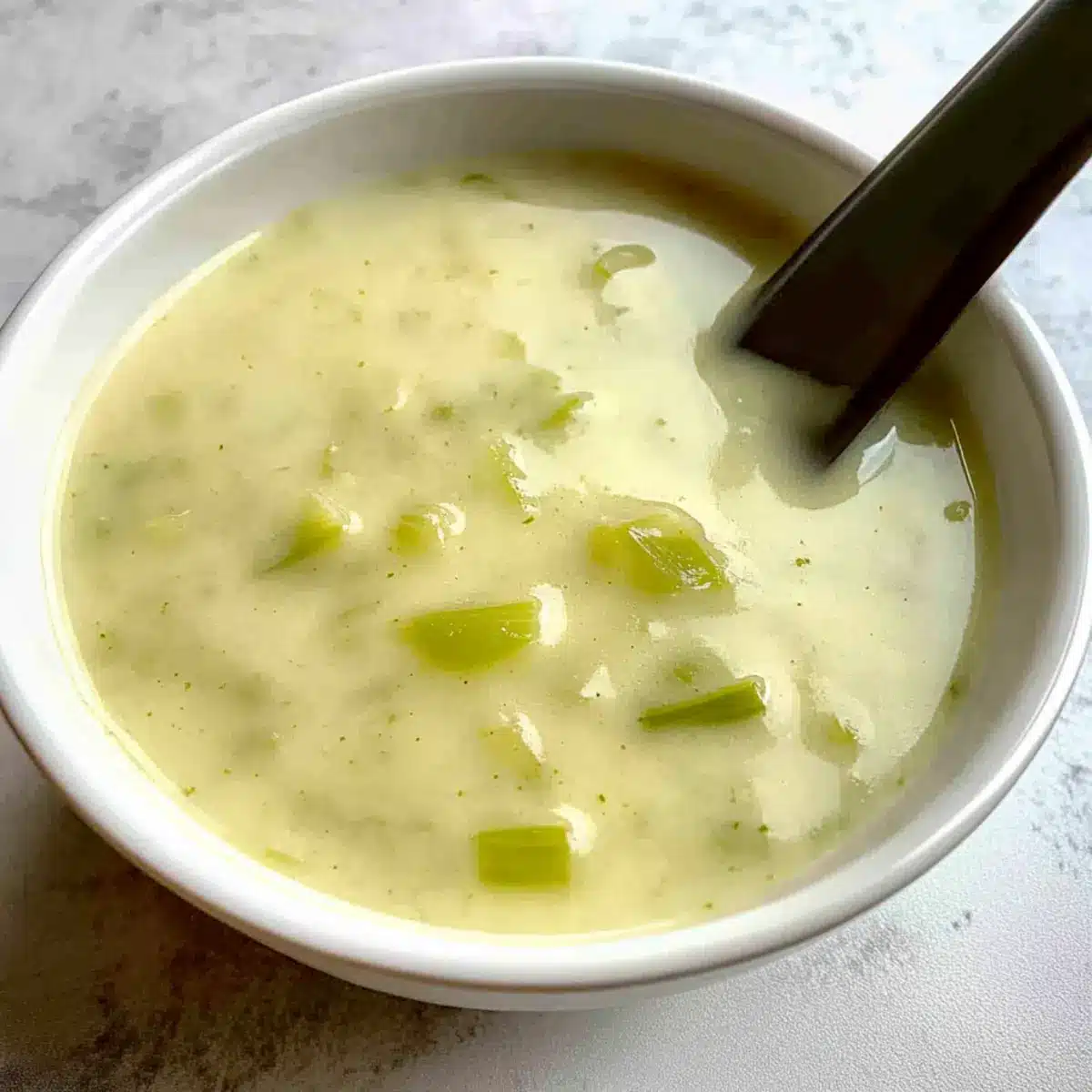 After simmering, carefully remove the bay leaves from the pot. Using an immersion blender, blend the mixture until smooth and creamy. If you don’t have an immersion blender, you can transfer the soup in batches to a countertop blender; just be cautious with hot liquids. This will give the Cream of Celery Soup its velvety texture.