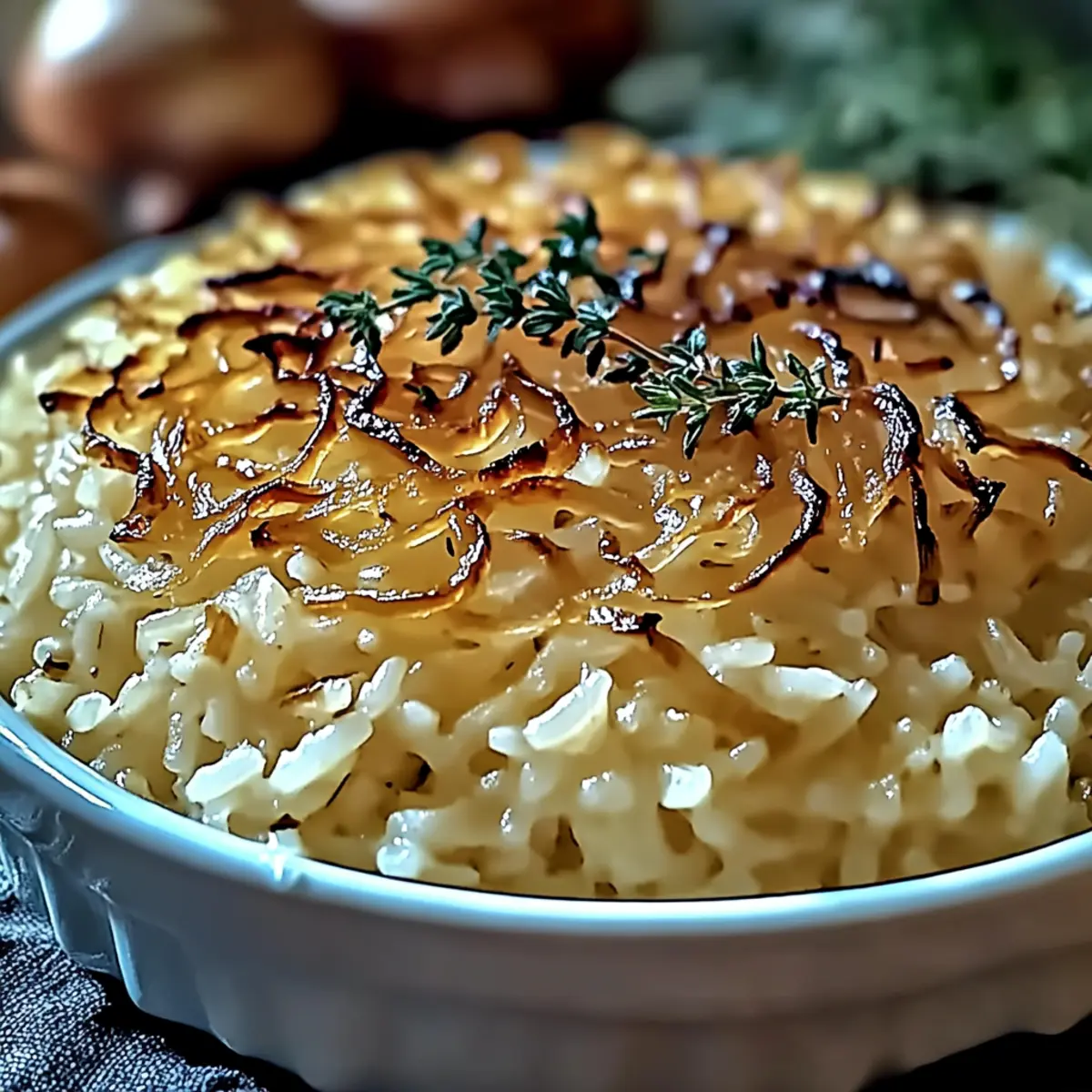 Comforting Delight: This Creamy French Onion Butter Rice is the ultimate comfort food, embracing you with its rich flavors and creamy texture.
