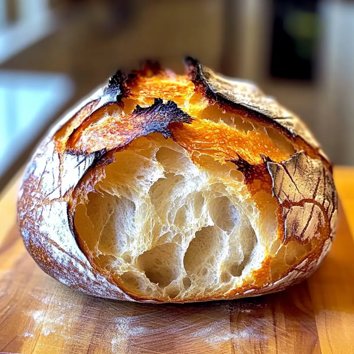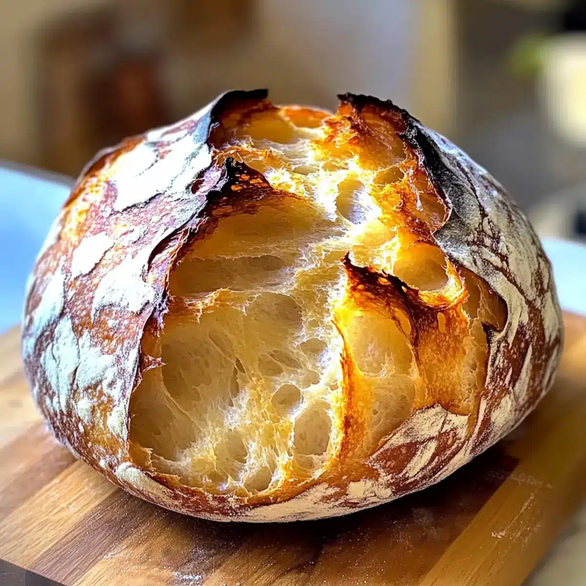• Steam for Crispness: Add a few ice cubes to the Dutch oven just before placing the lid on to enhance crustiness without extra effort.