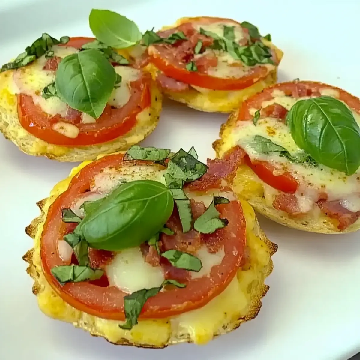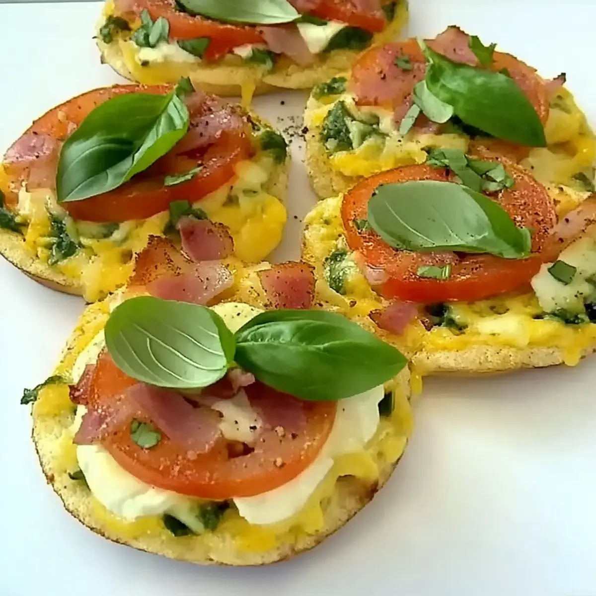 These English-Muffin Breakfast Pizzas are perfect for busy mornings when you need a quick meal! You can prep the muffin halves with the tomato slices and olive oil drizzle up to 24 hours in advance, covering them tightly and refrigerating to keep them fresh. For added convenience, layer the Canadian bacon and mozzarella cheese on top right before baking to prevent sogginess. When you’re ready to enjoy your breakfast pizza, simply pop them in a preheated oven, bake for 10-12 minutes until golden, then finish with fresh basil. This way, you’ll have a delicious, hearty breakfast in minutes, making mornings a breeze!