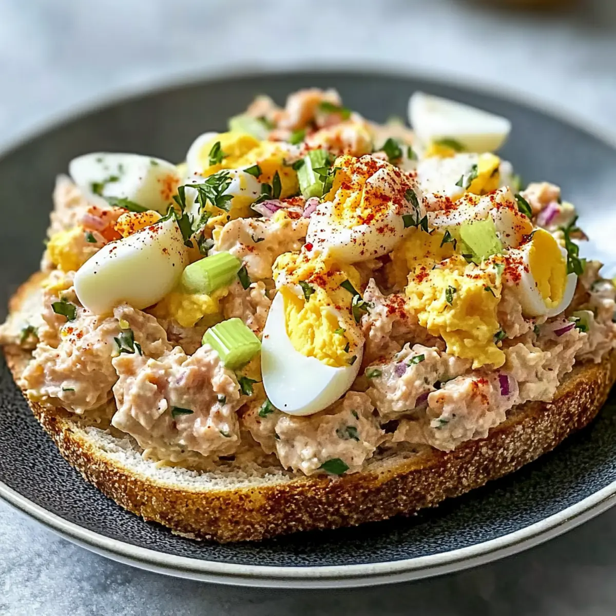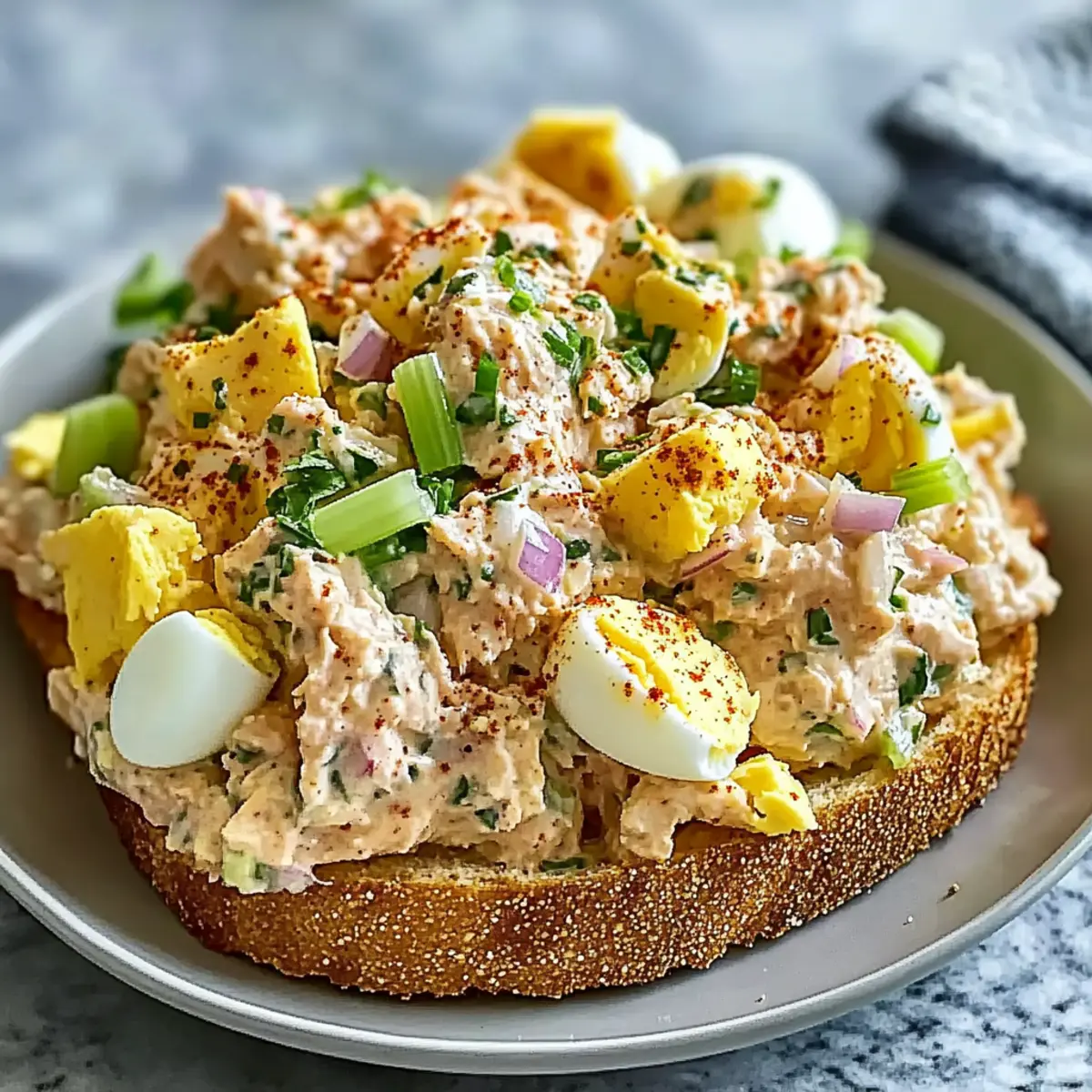 As the sun shines bright and the air warms up, there’s nothing quite like the joy of a simple, satisfying meal on a lazy afternoon. This Healthy Tuna Egg Salad Recipe: Creamy delivers just that—offering a delightful reminder of classic picnics and neighborhood block parties. With its quick prep time, it becomes your go-to solution for busy weekdays or last-minute gatherings, making homemade meals stress-free. Plus, it’s effortlessly customizable, inviting you to get creative with add-ins that suit your cravings. Whether you serve it in a crisp lettuce cup or piled high on your favorite bread, this dish is sure to rekindle fond memories and create new ones around the table. What unique twist will you add to make it your own?