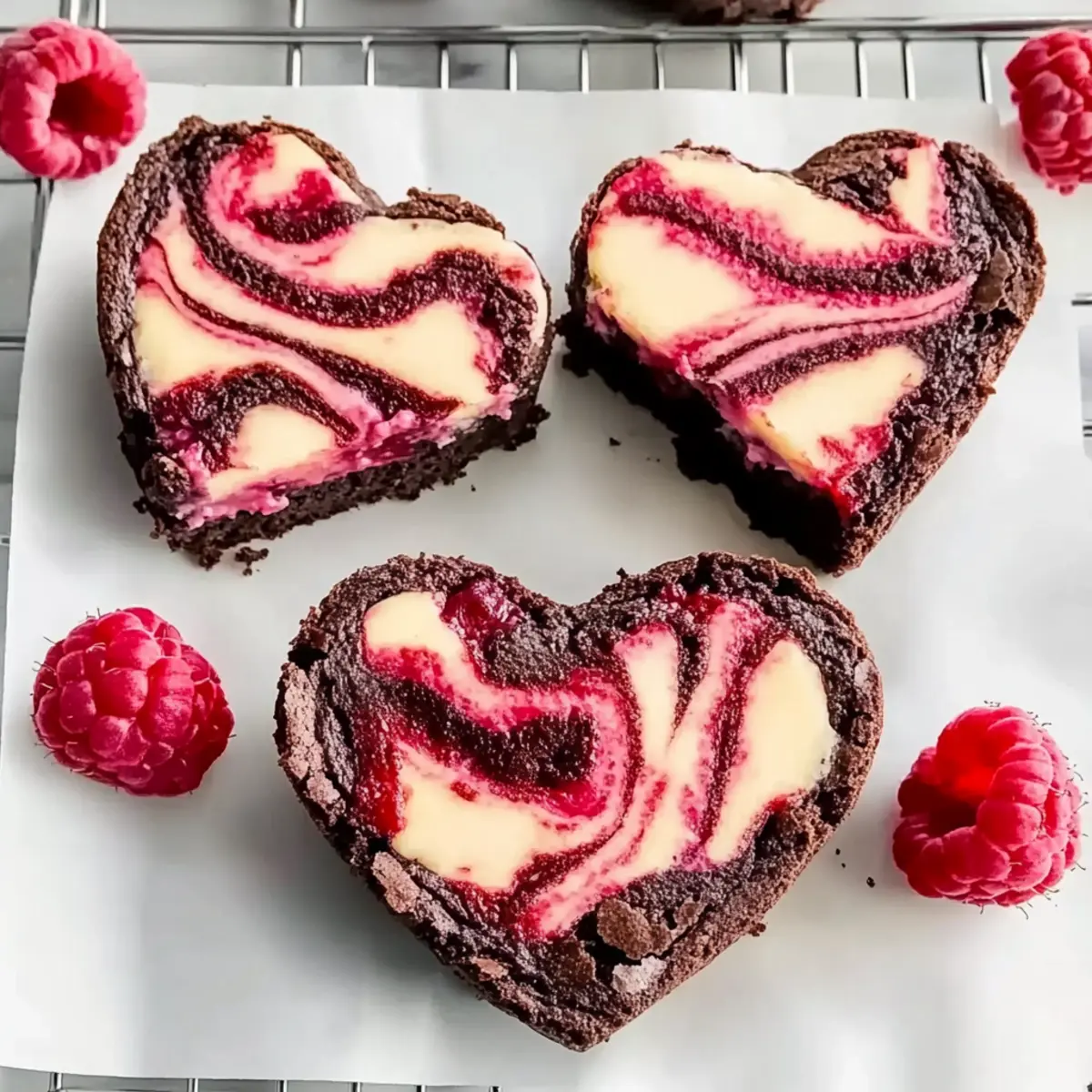 Heart Shaped Brownies with Raspberry Cheesecake Swirl