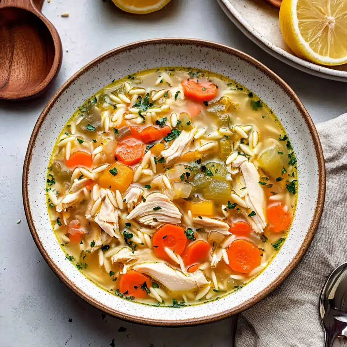 Very! You can easily make the Lemon Chicken Soup gluten-free by substituting the dry orzo with gluten-free pasta or quinoa. Additionally, ensure that your chicken broth is certified gluten-free. This way, everyone can enjoy a warm bowl of comfort without worry!