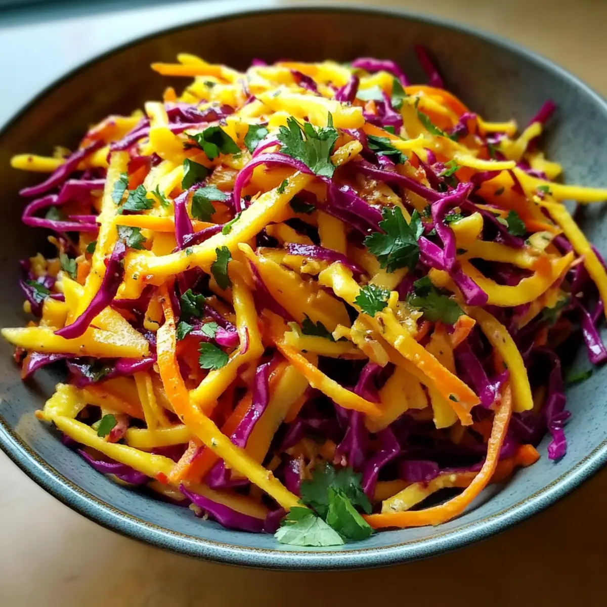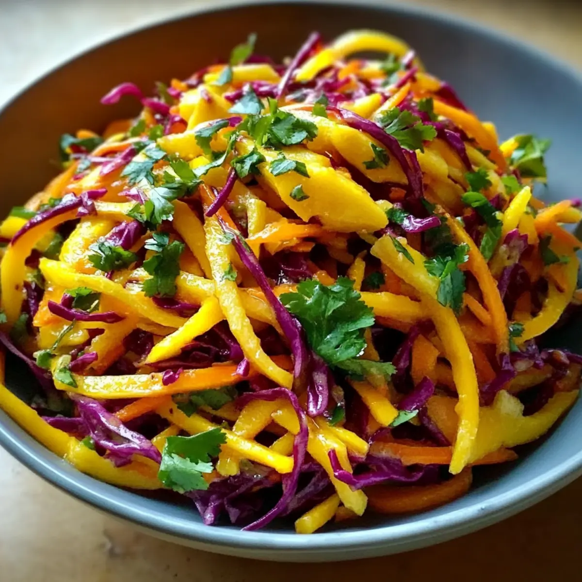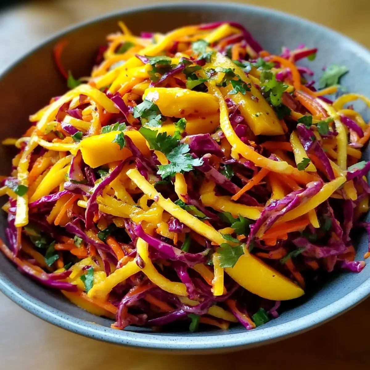 Bright, Fresh Ingredients: The combination of sweet mango, crunchy cabbage, and vibrant carrots brings a burst of flavor to any table.