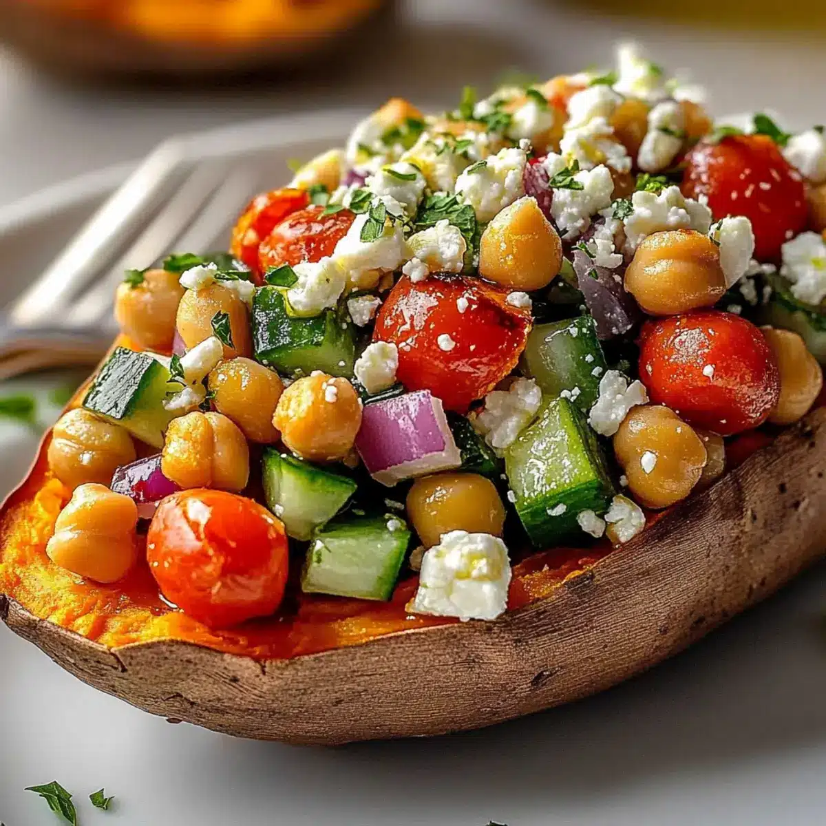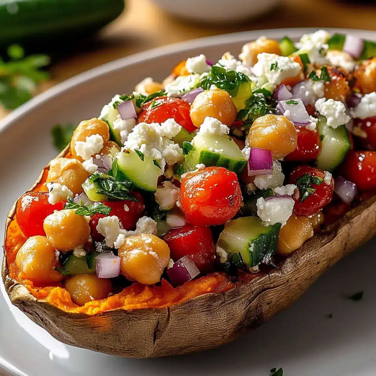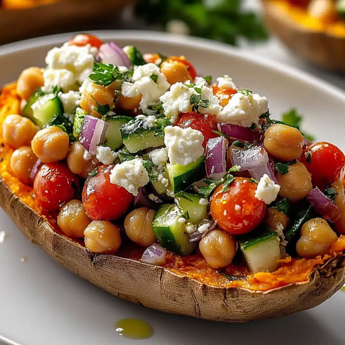 Mix & Match Fillings: Feel free to experiment! Substitute chickpeas with white beans or quinoa for varied texture while maintaining the Mediterranean stuffed sweet potatoes essence.