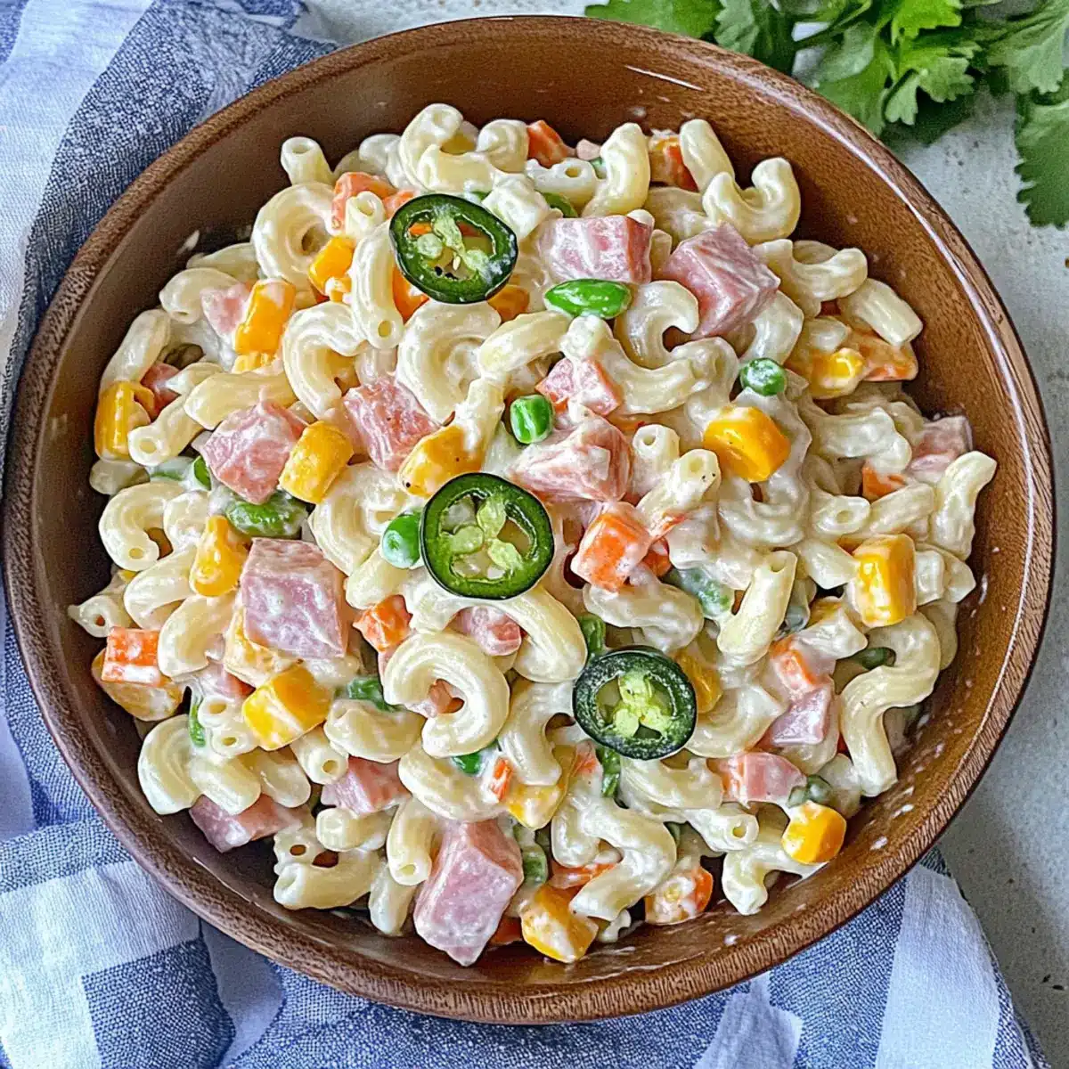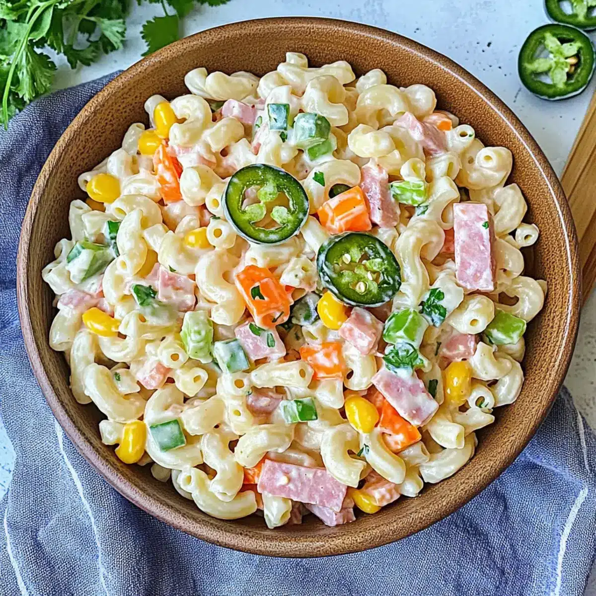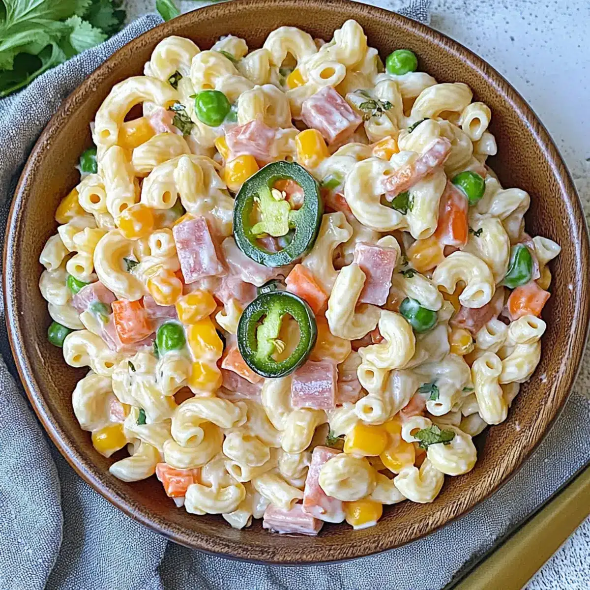 Bursting with Flavor: The vibrant addition of pickled jalapeños lends an exciting kick, transforming traditional macaroni salad into a zesty delight.