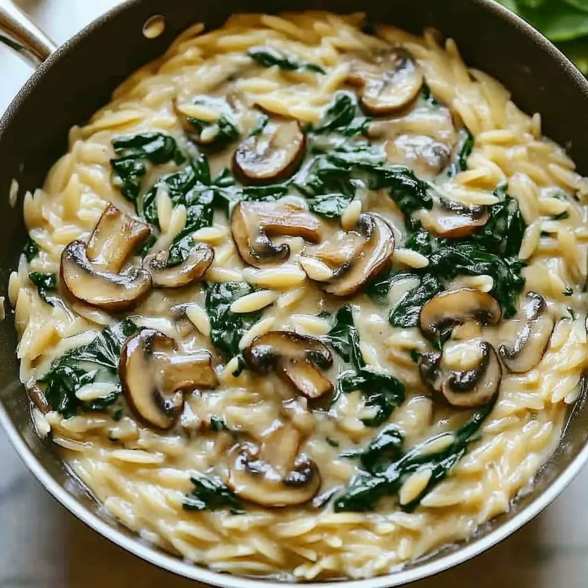 Quick and Easy: This dish comes together in under 30 minutes, making it perfect for busy weeknights. Nutrient-Packed: Loaded with vitamins from fresh spinach and minerals from mushrooms, it’s comfort food that nourishes your body. Versatile: Easily adaptable for vegan and gluten-free diets, you can customize based on what you have on hand. Creamy and Delicious: The rich, velvety sauce wraps around the orzo, creating an indulgent experience. Family Favorite: This Mushroom and Spinach Orzo is guaranteed to impress at the dinner table, whether paired with a fresh caprese salad or a slice of crusty bread.