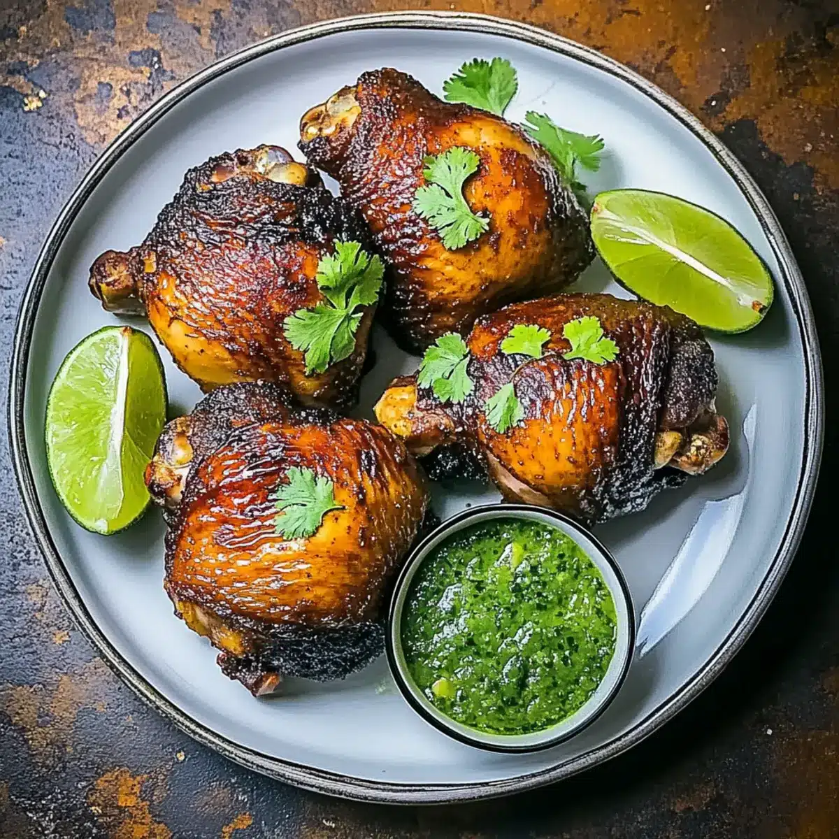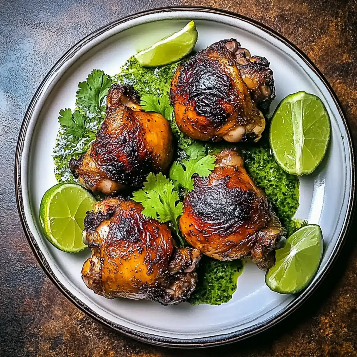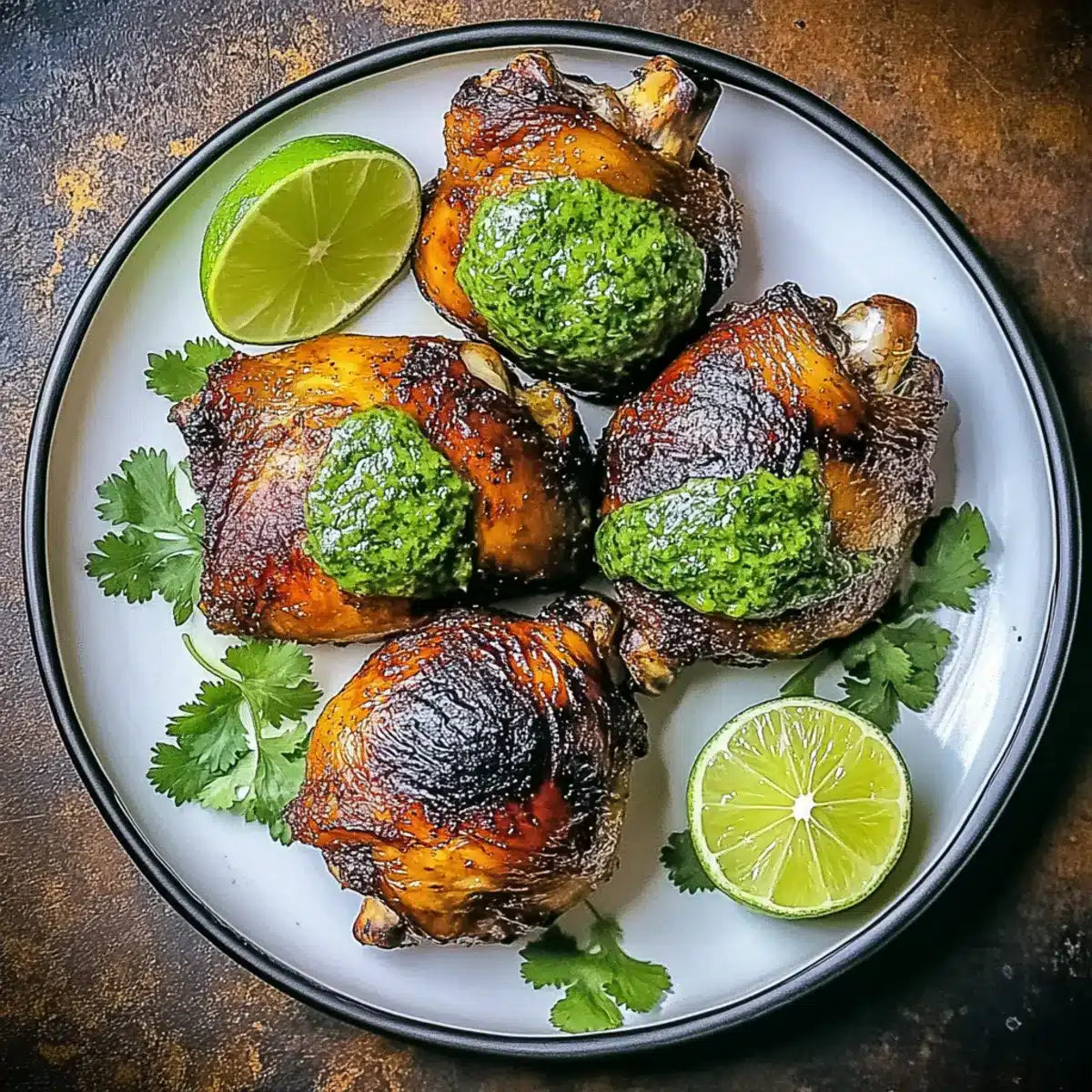 - Slice the beautifully roasted chicken and serve it hot alongside the vibrant cilantro sauce. Include lime wedges for a zesty drizzle.