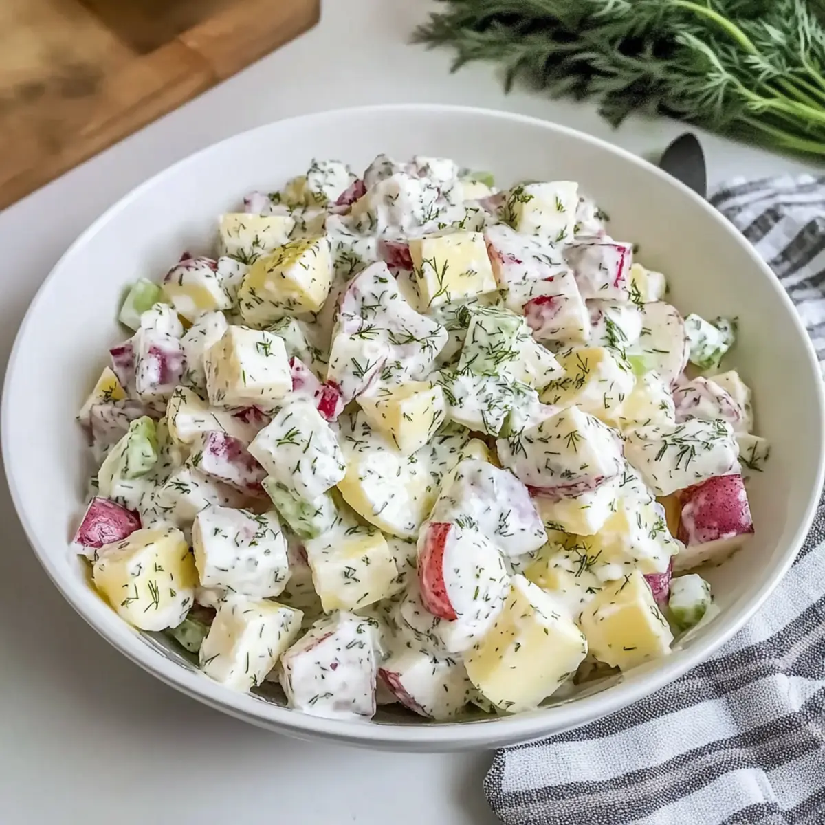 - Fresh Dill – Elevates the salad with its herbal notes; if using dried, remember to reduce the quantity.
