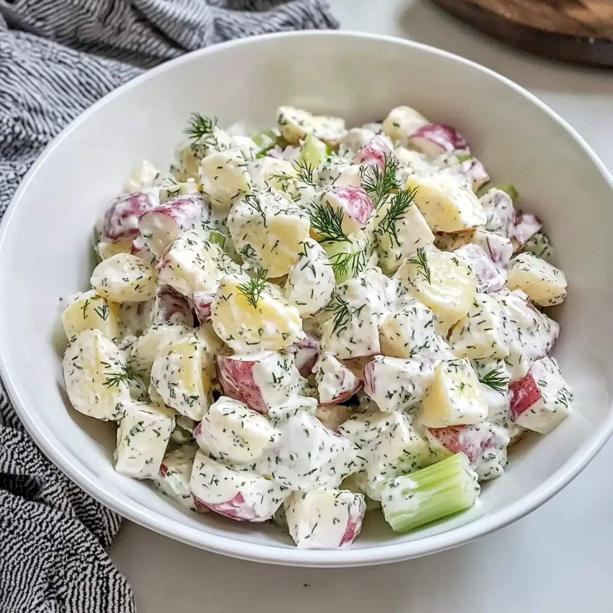 Very! If you find that your potato salad is too creamy, there’s an easy fix. You can add more chopped celery, potatoes, or even diced cucumber to balance out the creaminess. You can also mix in a splash of vinegar or a squeeze of lemon juice for added brightness that cuts through the richness.