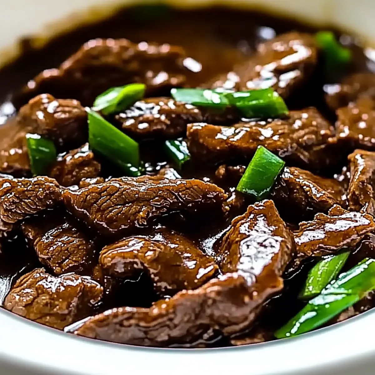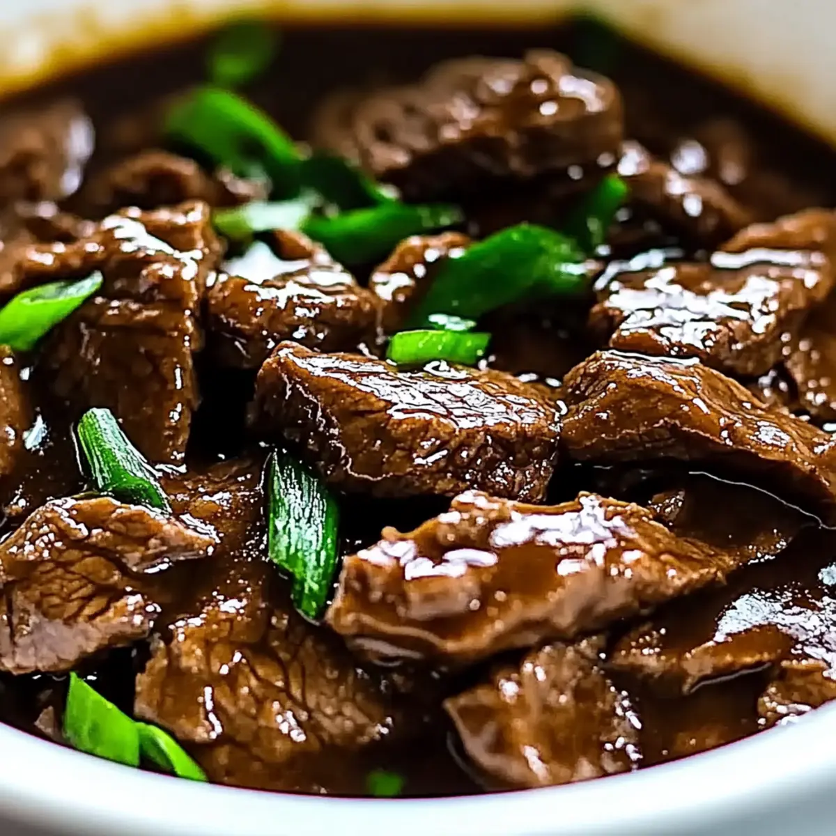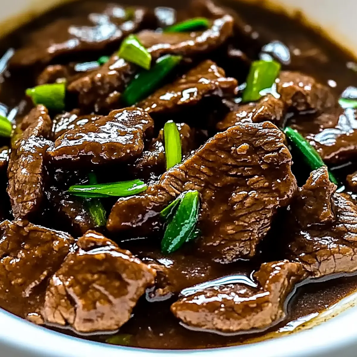 - Plate the Slow Cooker Mongolian Beef, drizzle with the thickened sauce, and garnish with sliced green onions.