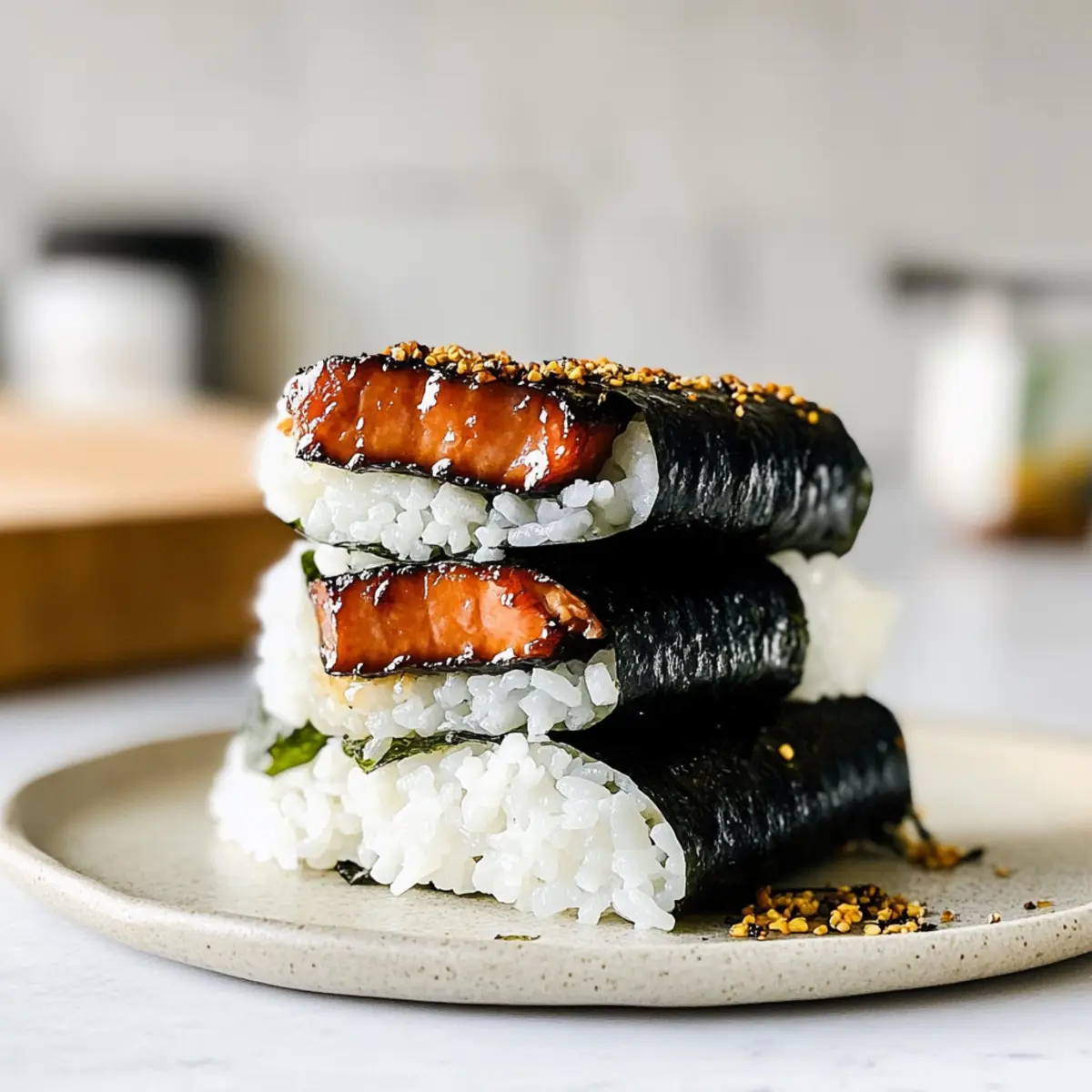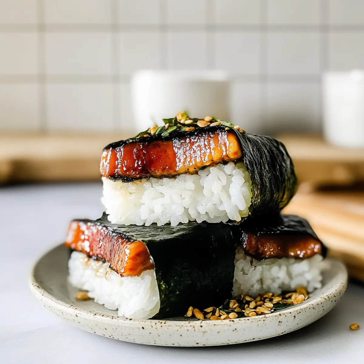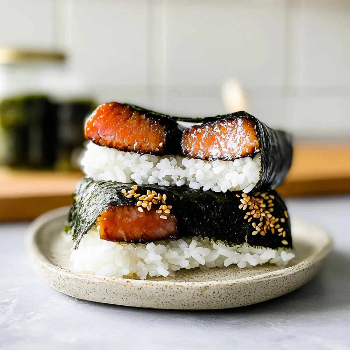 Veggie Boost: Incorporate thin slices of cucumber or avocado inside your musubi for a fresh crunch, elevating the overall texture and flavor.