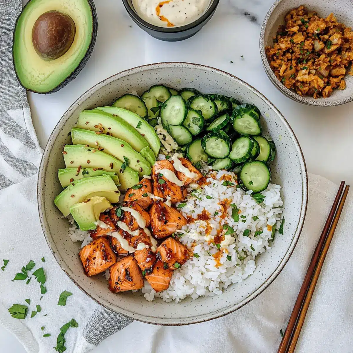 Delicious Spicy Salmon Bowls with Coconut Rice for Quick Dinners