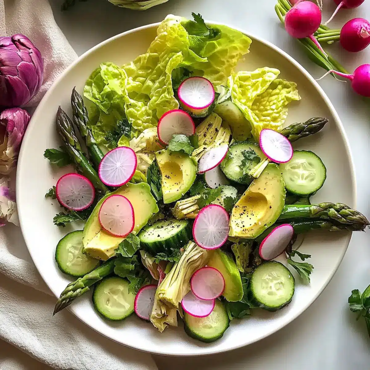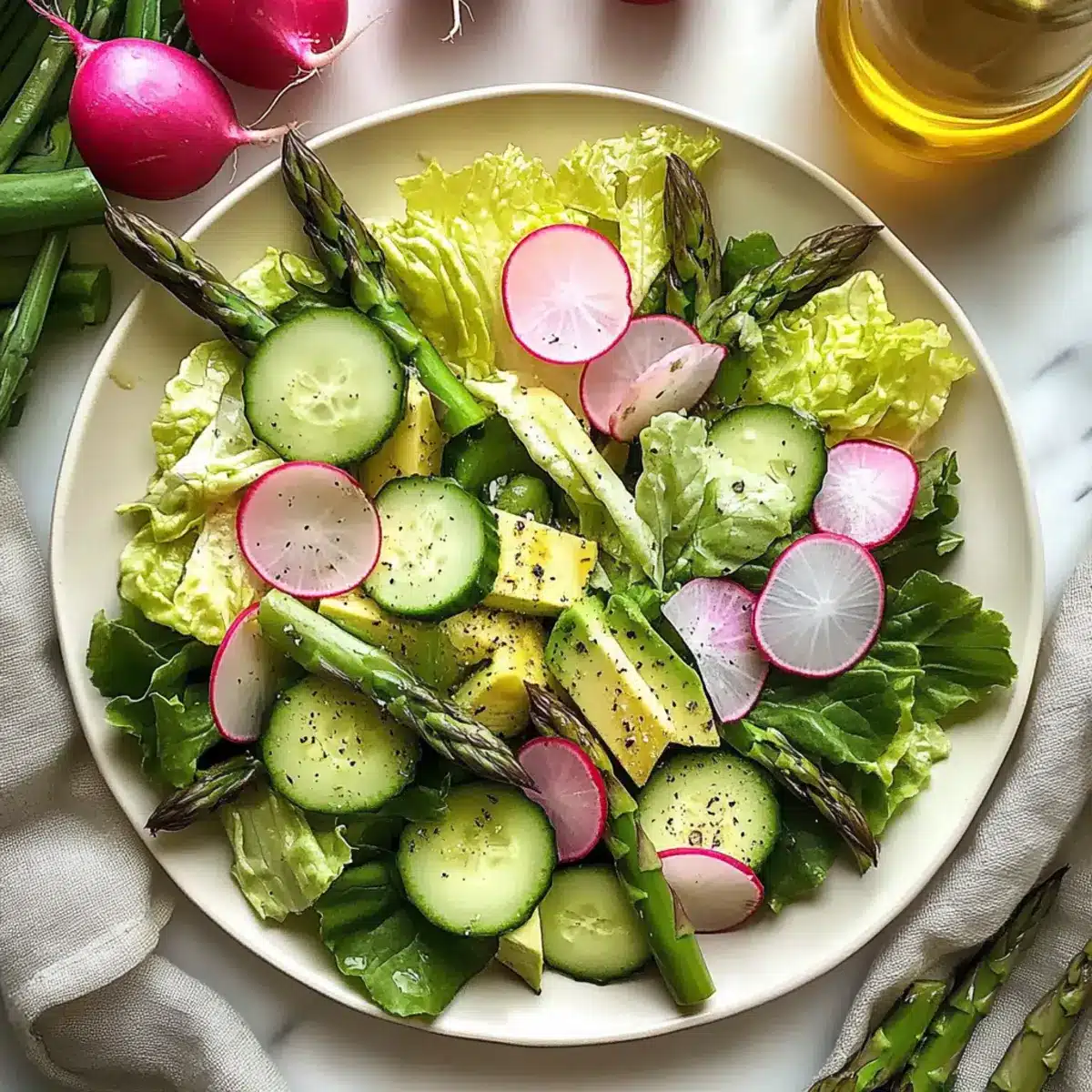 These vibrant Spring Salad for Easter components are perfect for meal prep, making your holiday planning a breeze! You can wash and chop the lettuce, prepare the cucumbers, radishes, and blanch the asparagus up to 24 hours in advance, storing each ingredient separately in airtight containers in the refrigerator to maintain their freshness. Mix the dressing a day ahead as well to let the flavors meld beautifully. Just remember to cube the avocado right before serving to prevent browning. When you’re ready to enjoy this refreshing Spring Salad for Easter, simply combine all ingredients, drizzle the dressing, toss gently, and serve for a delightful dish that will impress your guests with minimal effort!