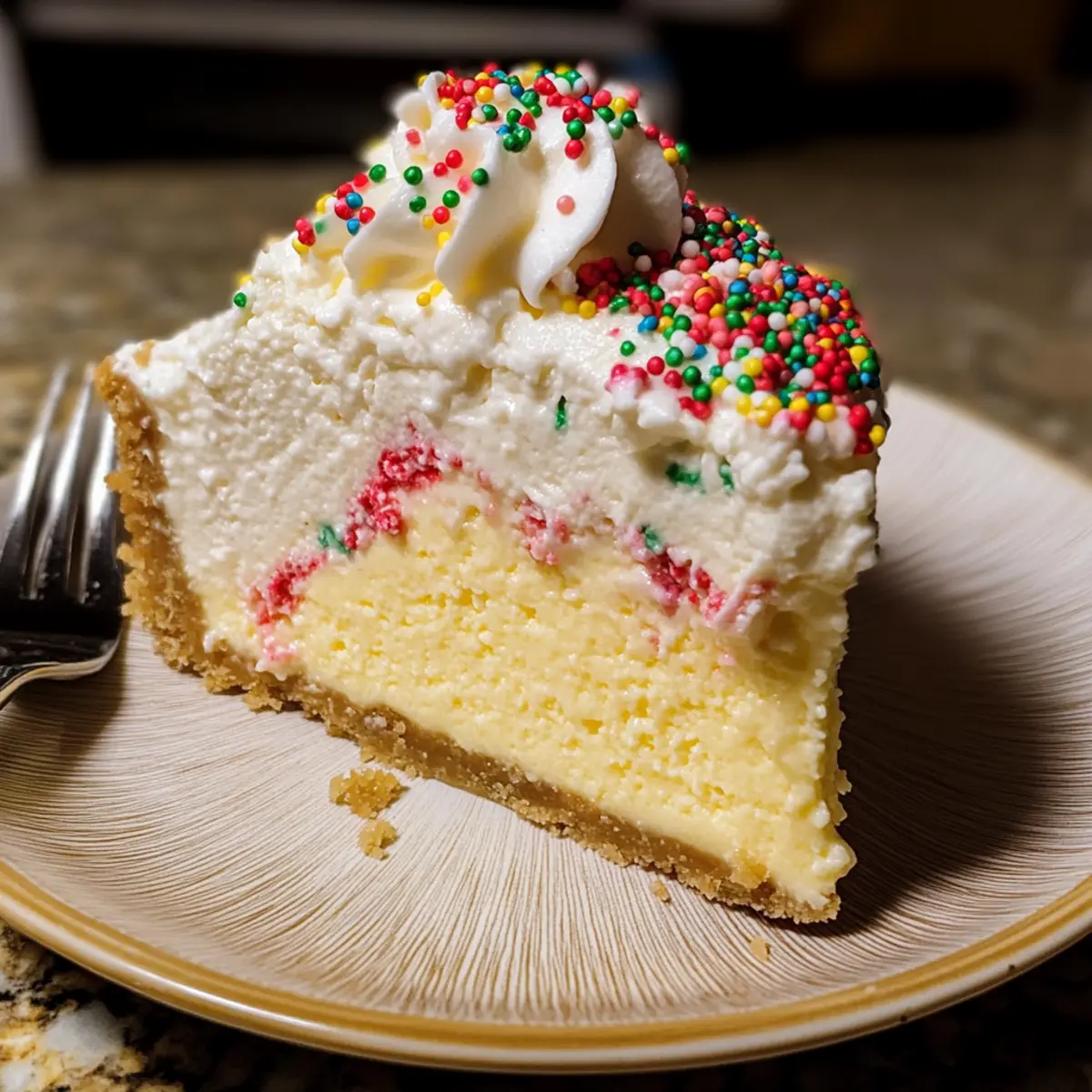 - Serve chilled and garnish with whipped cream, crushed sugar cookies, or sprinkles before slicing.