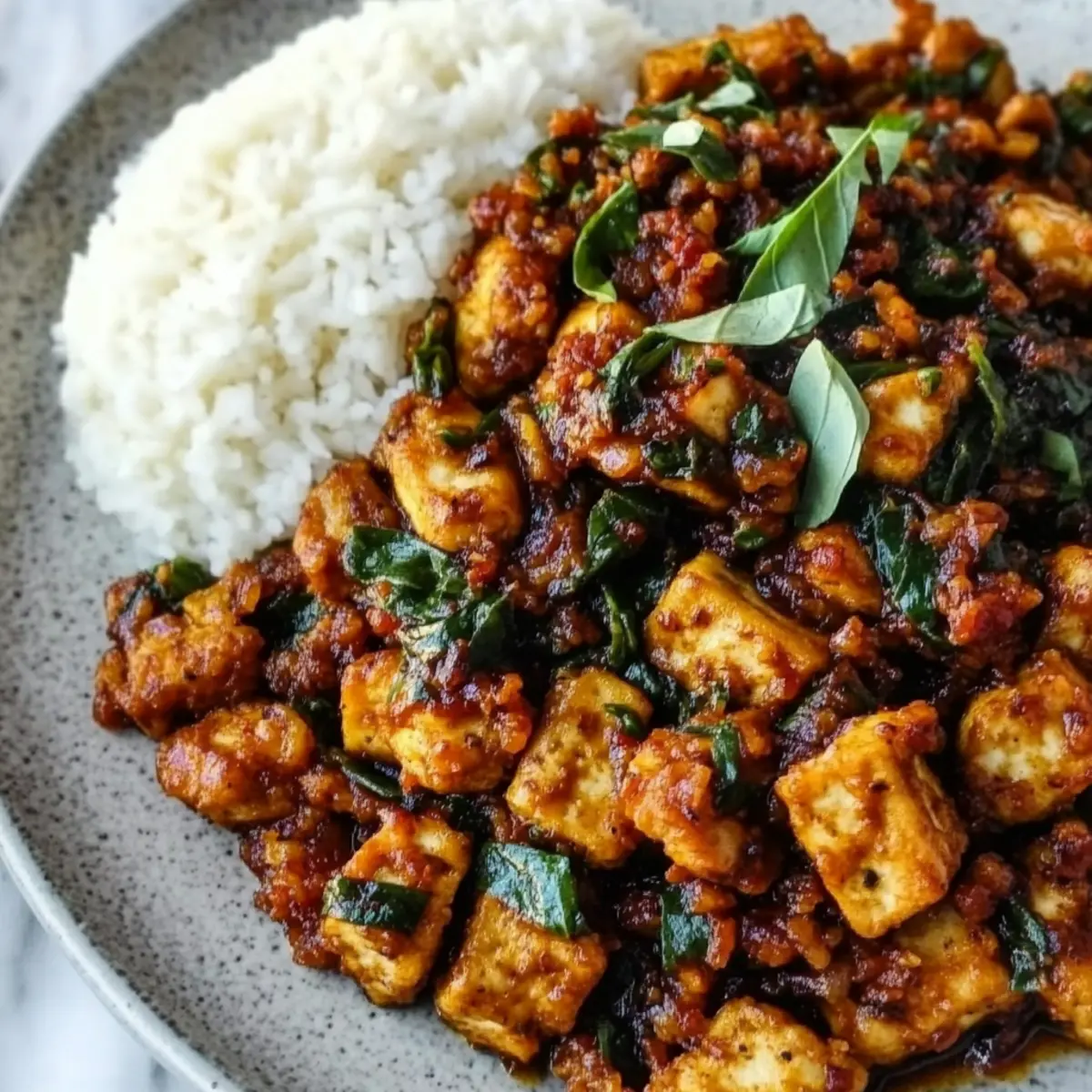 - Finish with Basil: Allow the dish to simmer for another minute as you stir in fresh Thai basil, watching it wilt. The sauce should be thick and glossy, coating the tofu.