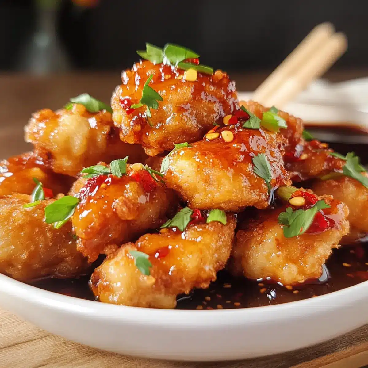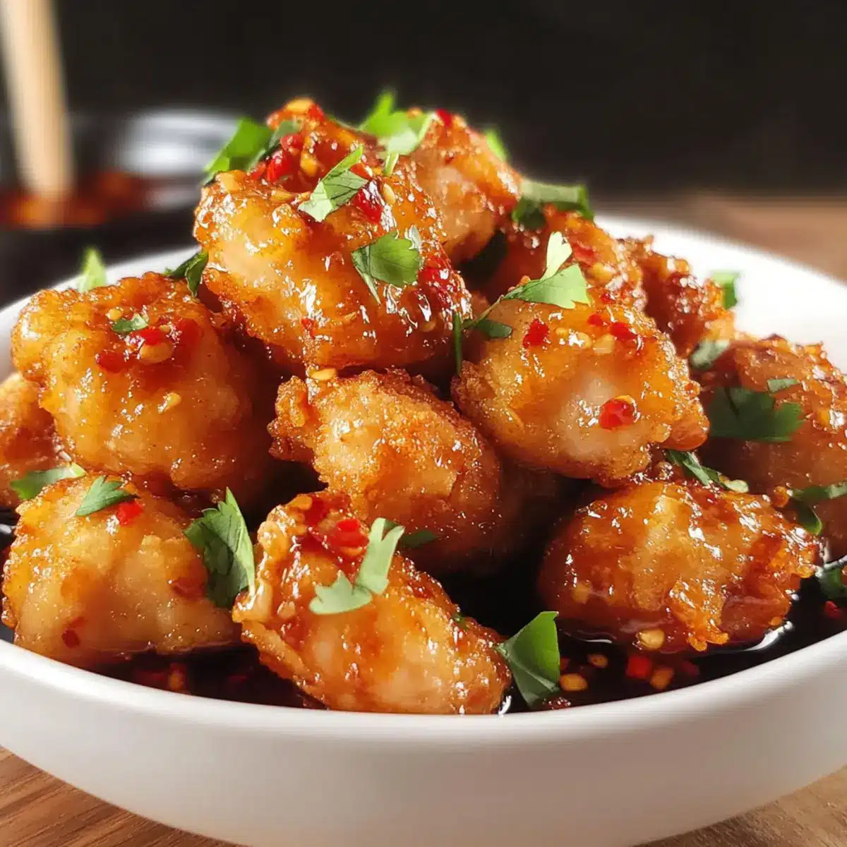 Once the Thai Chicken Bites are beautifully browned, remove them from the oil and place them on a wire rack or paper towels to drain excess grease. While they’re still hot, generously drizzle with sweet chili sauce for that signature flavor. Garnish with fresh herbs if desired, and savor the enticing aroma as you prepare to serve!