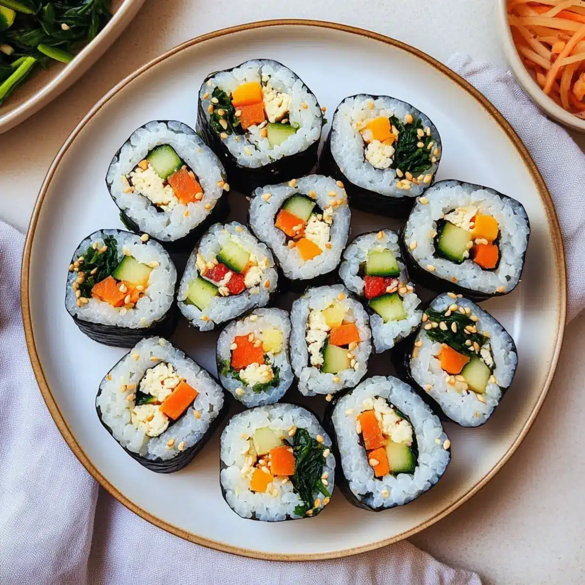 Very much! The beauty of vegetable gimbap is its flexibility. You can easily adjust fillings based on your dietary preferences. Swap in tofu for a vegan option, use different greens like kale instead of spinach, or even add proteins like grilled chicken to make it your own. Enjoy experimenting with your favorites!
